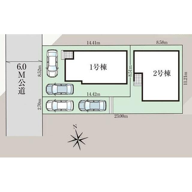 | 用途地域 | 1種低層 | 接道状況 | 西6.0m 公道 接面8.5m |